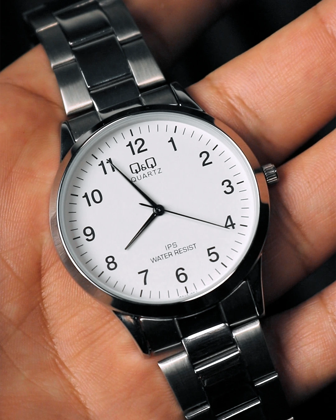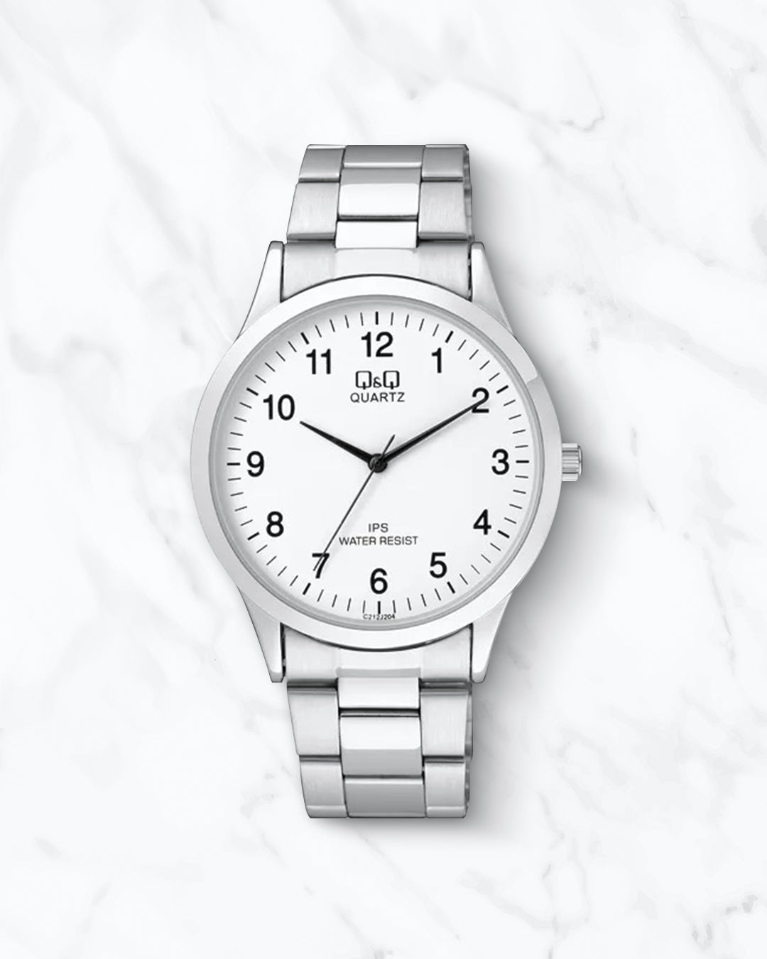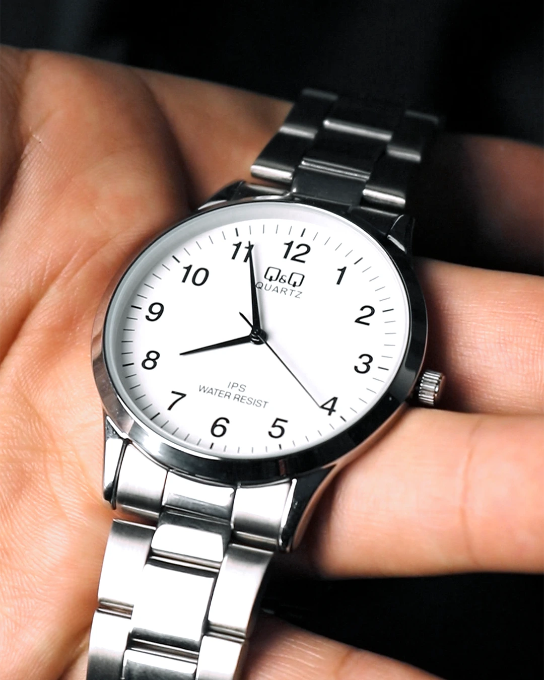 El Q&Q representa la fusión perfecta entre diseño clásico y tecnología de precisión. Fabricado con materiales premium, su acabado plateado y esfera blanca imponen elegancia en cualquier ocasión. Ideal para quienes buscan proyectar seguridad, estilo y puntualidad.