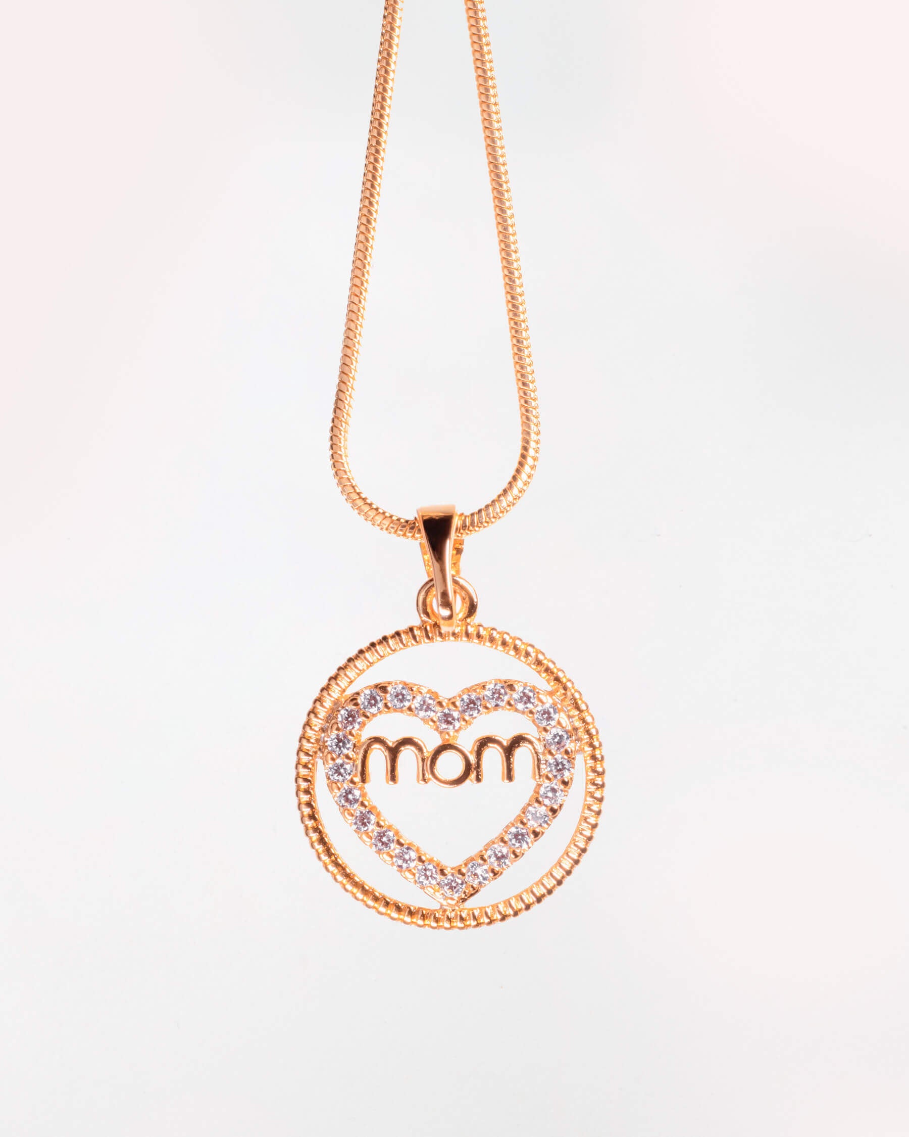 Dije de corazón con forma de corazón con la palabra " MOM " grabada.